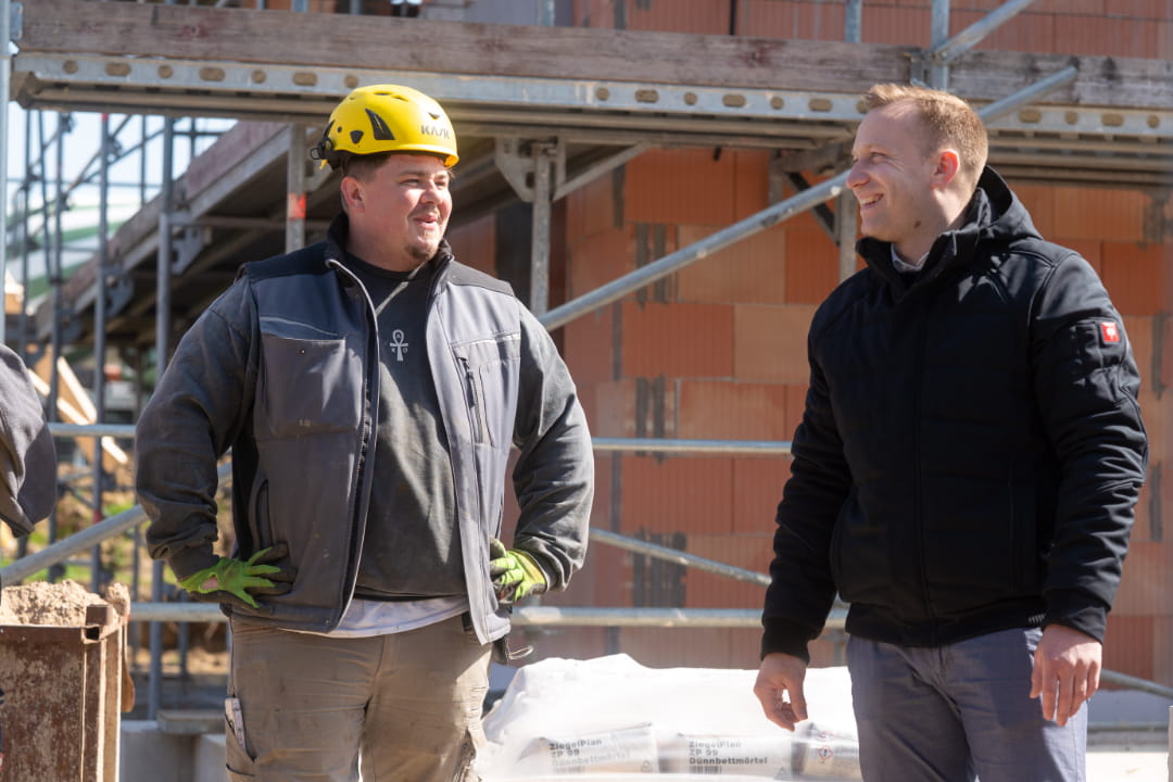 Bauarbeiter und Bauleiter im Gespräch